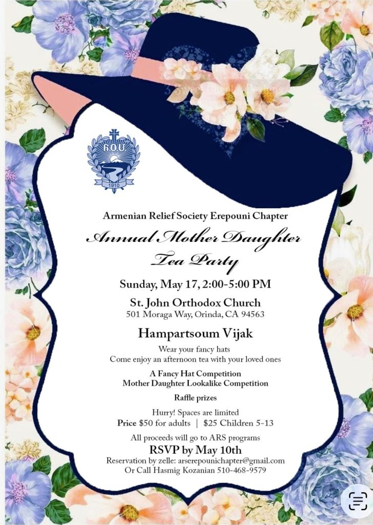 17 May: Annual Mother Daughter Tea Party: Hampartsoum Vijak