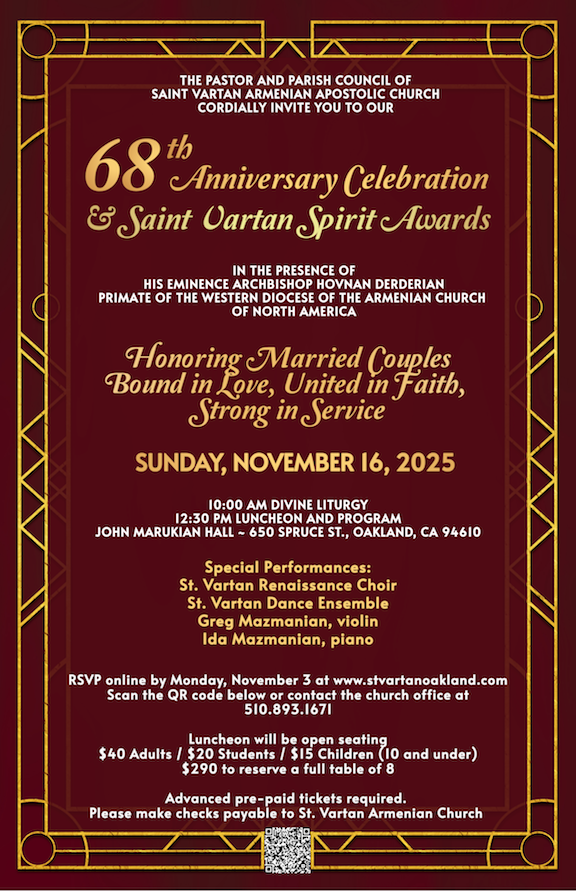 16 Nov: St. Vartan Annual Banquet and Spirit Awards